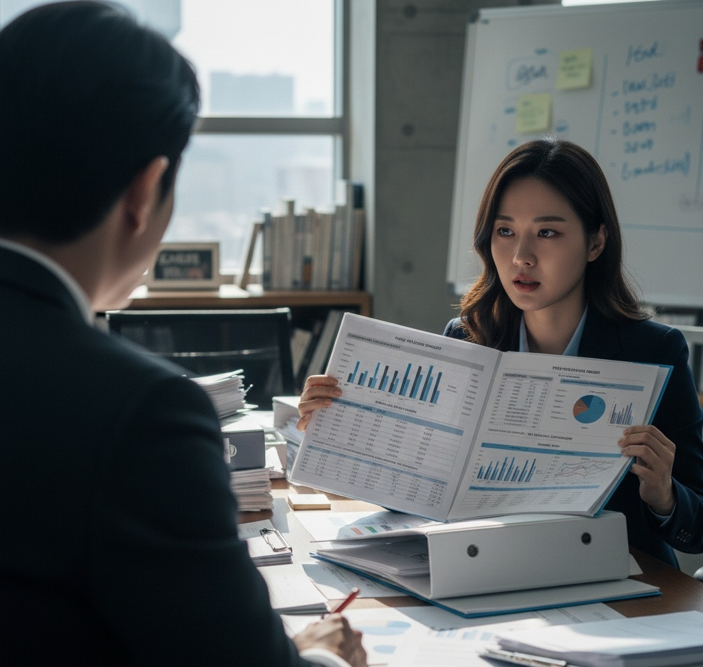 소희가 보고서를 펼쳤다. 그녀가 직접 조사한 통계들이 페이지마다 빼곡했다.