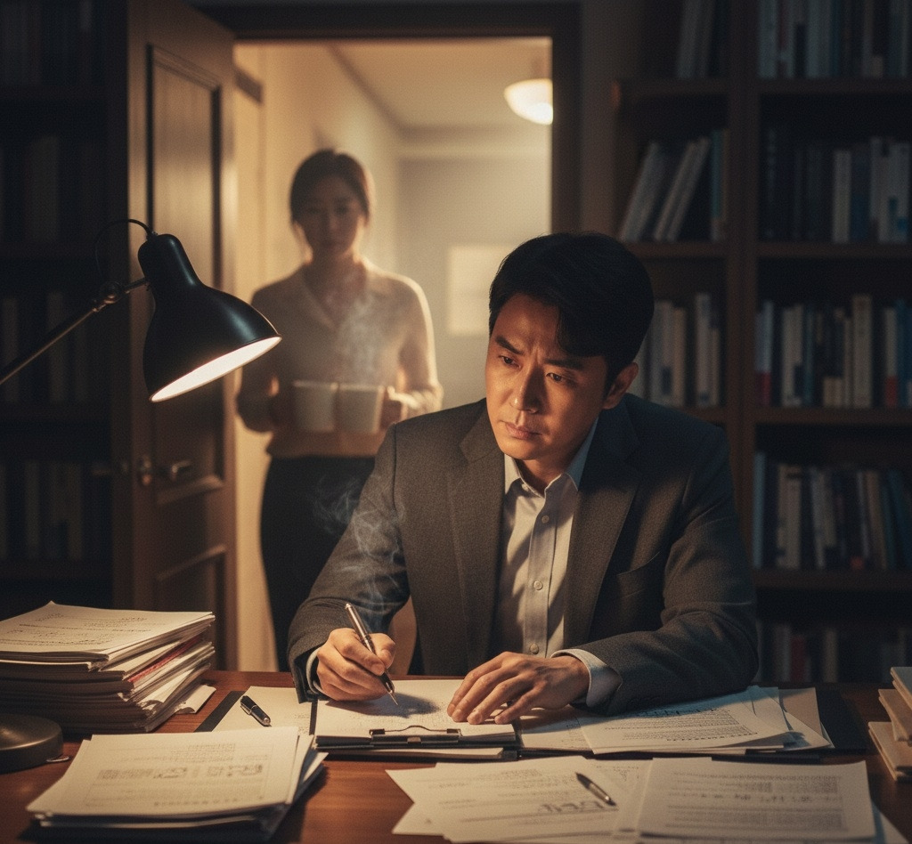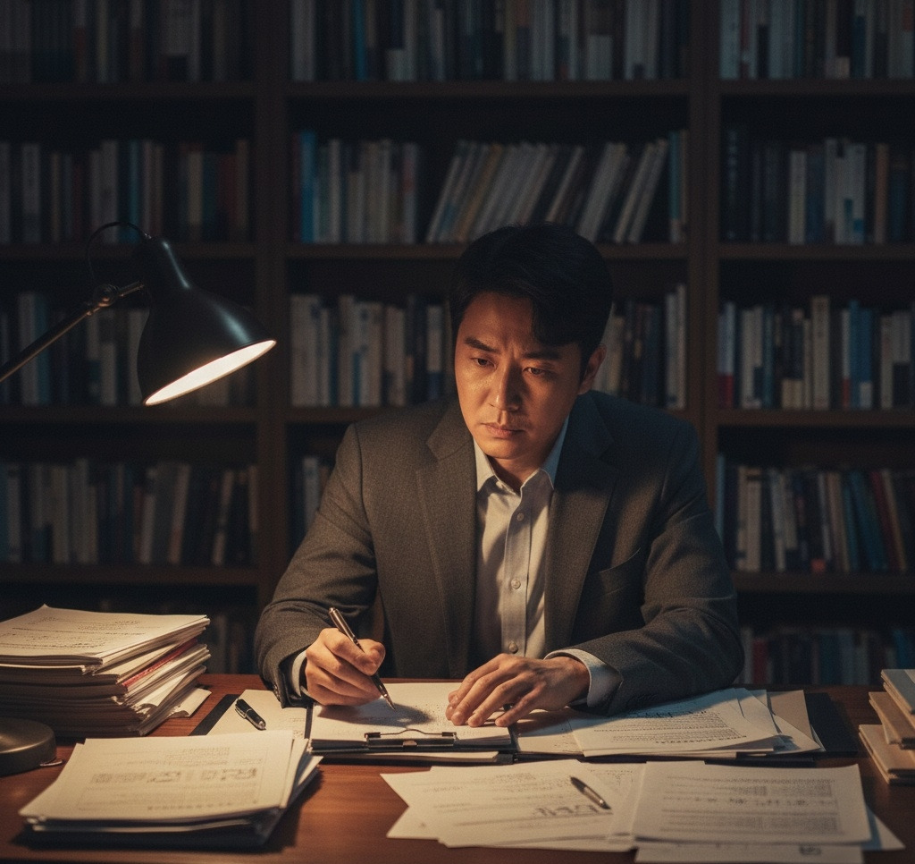 그날 밤, 진우는 서재에 앉아 있었다. 책상 위에는 최종 보고서 초안이 놓여 있었다. 그는 펜을 들었다 놓기를 반복했다.