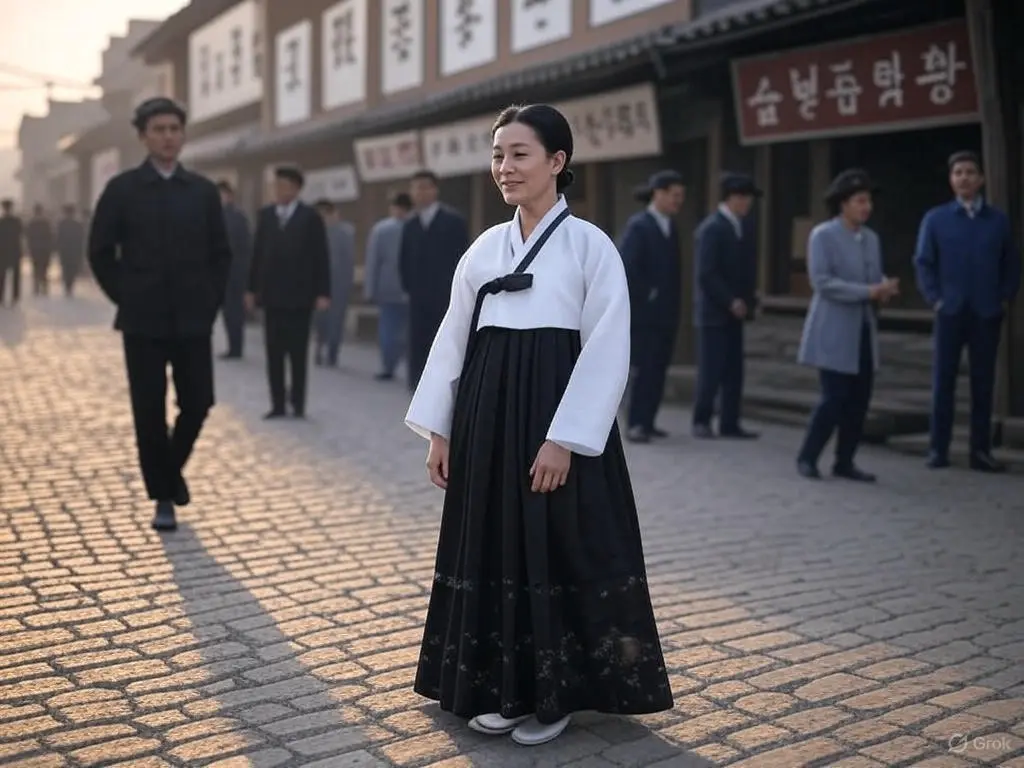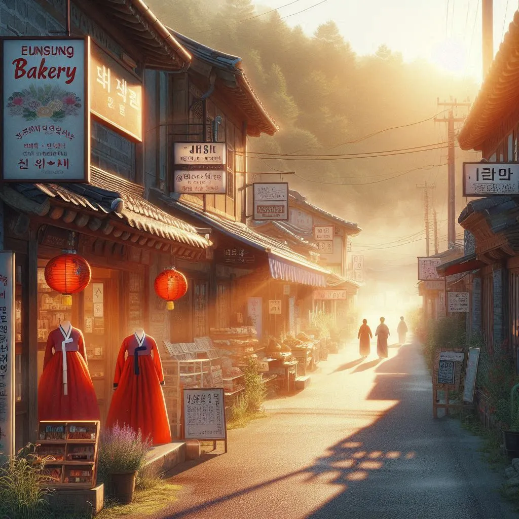 A small town along the quiet new road reveals its little shops before my eyes. As the morning sunlight spreads dazzlingly, the scent of freshly baked bread from Eunseong Bakery stimulates the appetites of the diligent townsfolk greeting the day. Next door, at Jeil Traditional Medicine Shop, the unique aroma of herbal medicine subtly wafts through the air, causing passersby to pause in their tracks. In the clothing store, where vibrant traditional hanbok glimmers, the outfits, lovingly prepared at dawn, shine even brighter in the morning sunlight.