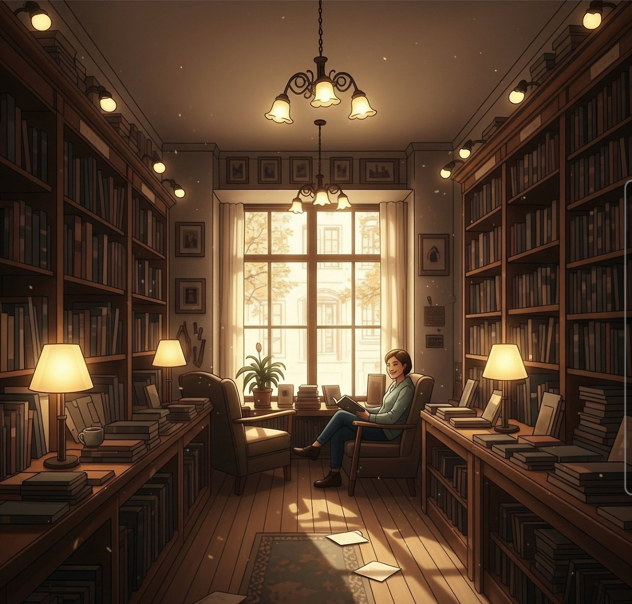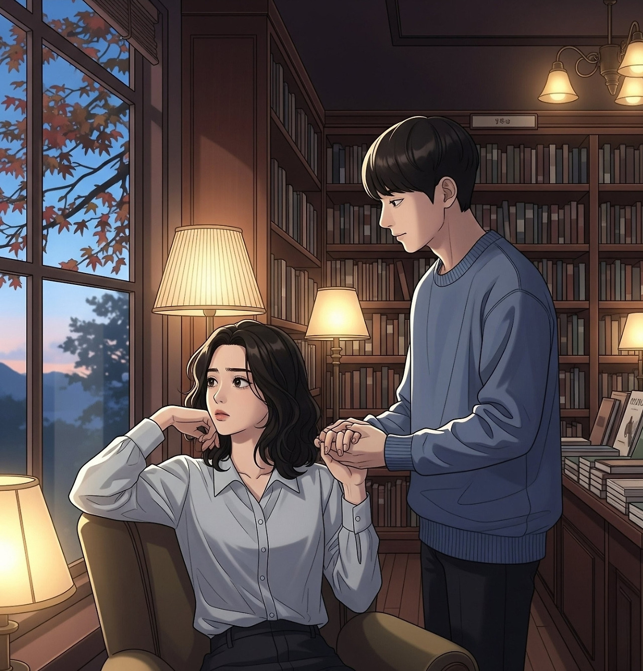 저녁이 되어 책방이 조용해지자,
