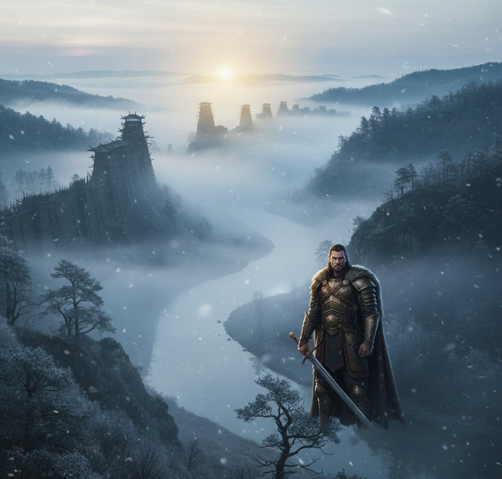 안개는 마치 오래된 영혼이 강 위에 내려앉은 듯 흐르고, 성벽 아래로 천천히 감겨 올라갔다.