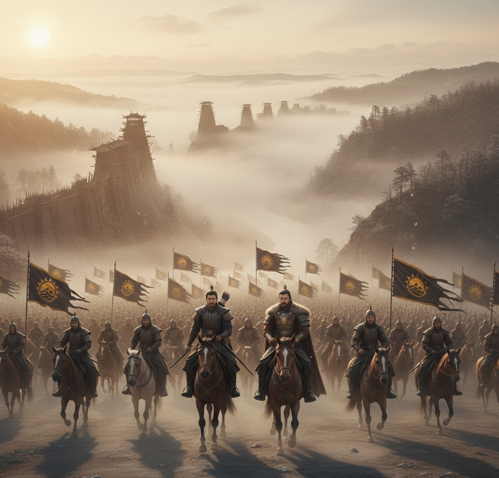 송양왕은 성루 위에서 그 장관을 바라보고 있었다.