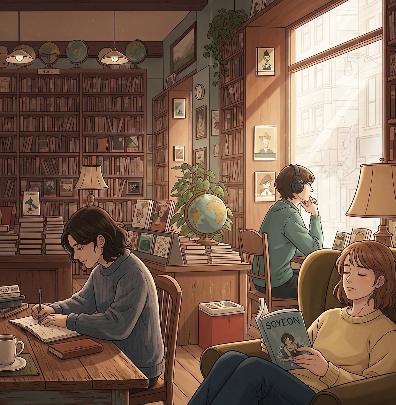 책방 안엔 잔잔한 재즈가 흐르고 있었다.