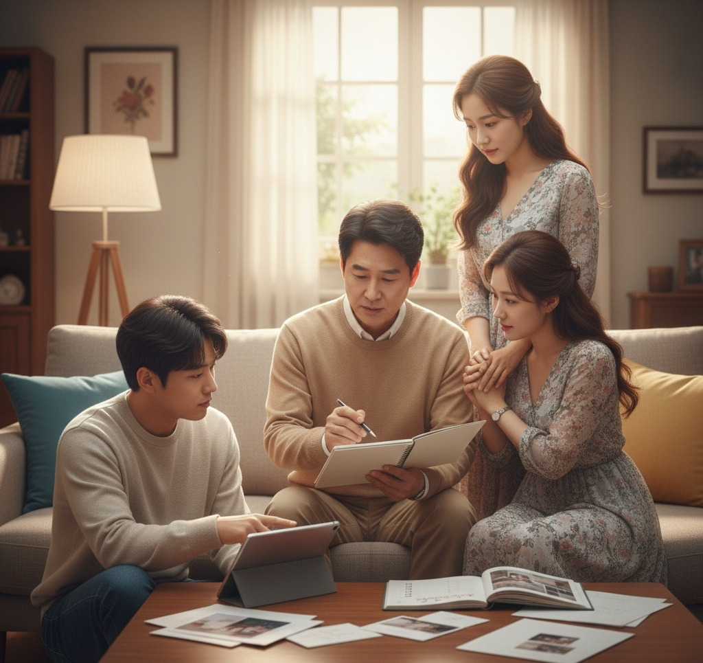 그날 저녁, 온 가족이 거실에 모였다. 수연의 결혼식(結婚式) 준비를 함께 점검(點檢)하기 위해서였다. 진수는 수첩을 펼치고 체크리스트를 확인했다.