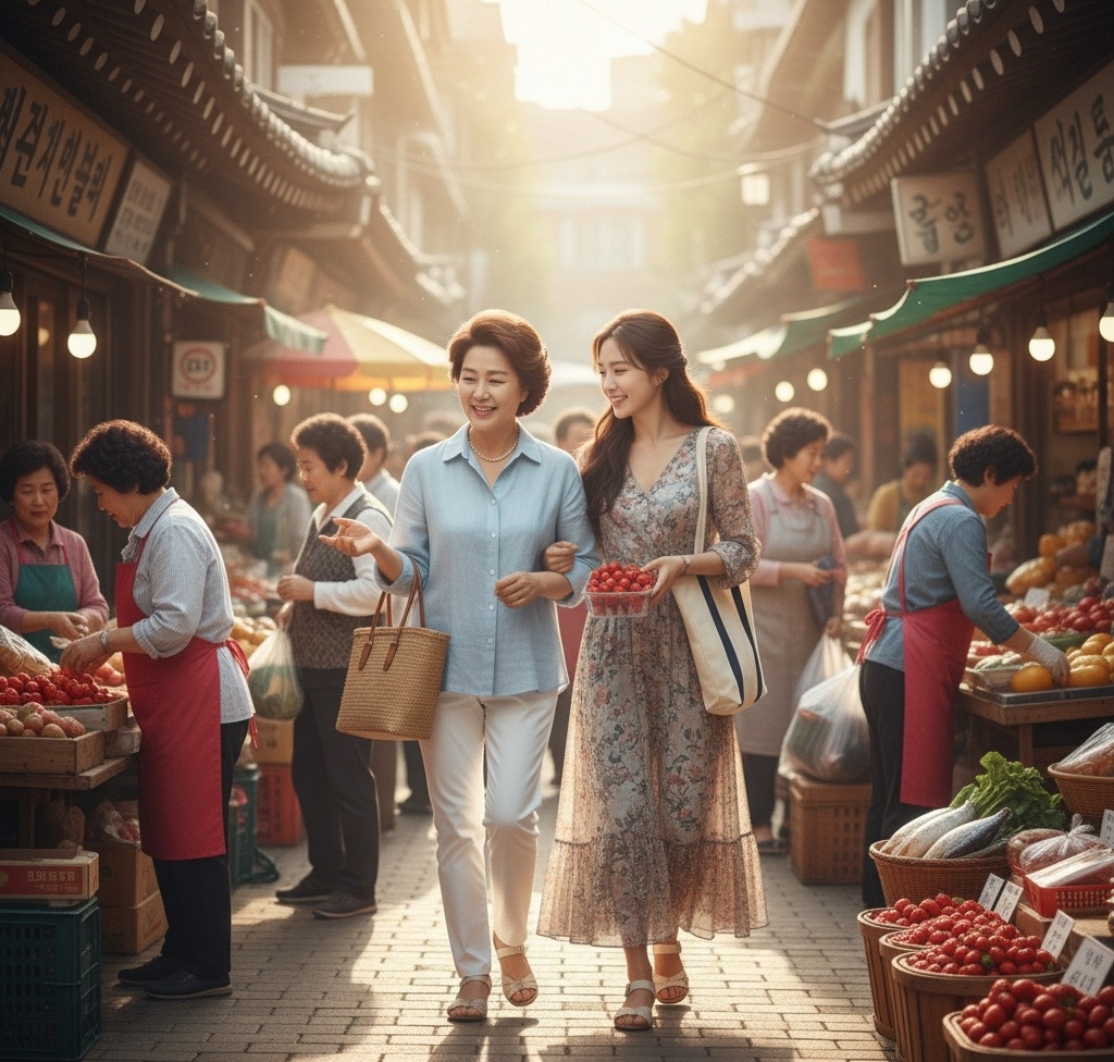 시장(市場)은 사람들로 북적였다. 채소 가게, 생선 가게, 떡집을 돌아다니며 장을 봤다. 정숙은 딸이 좋아하는 것들을 하나씩 골라 담았다. 딸과 함께 장을 보는 시간도 이제 얼마 남지 않았다는 생각에 하나하나가 애틋했다.