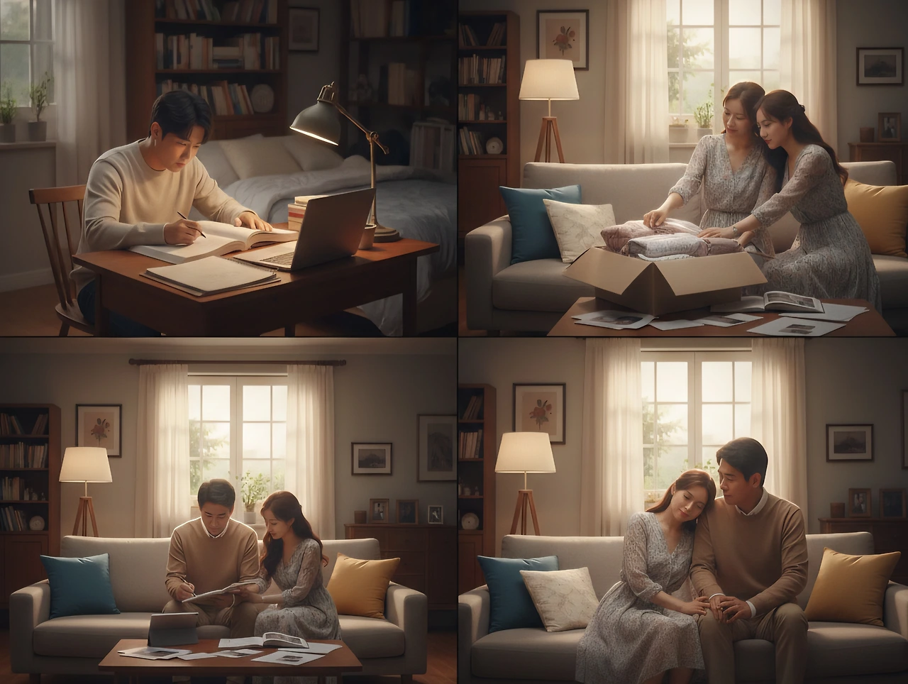 밤이 되었다. 민준은 자기 방에서 공부(工夫)를 하고, 수연은 혼수 물품을 정리하고, 진수와 정숙은 안방에 앉아 이야기를 나눴다.