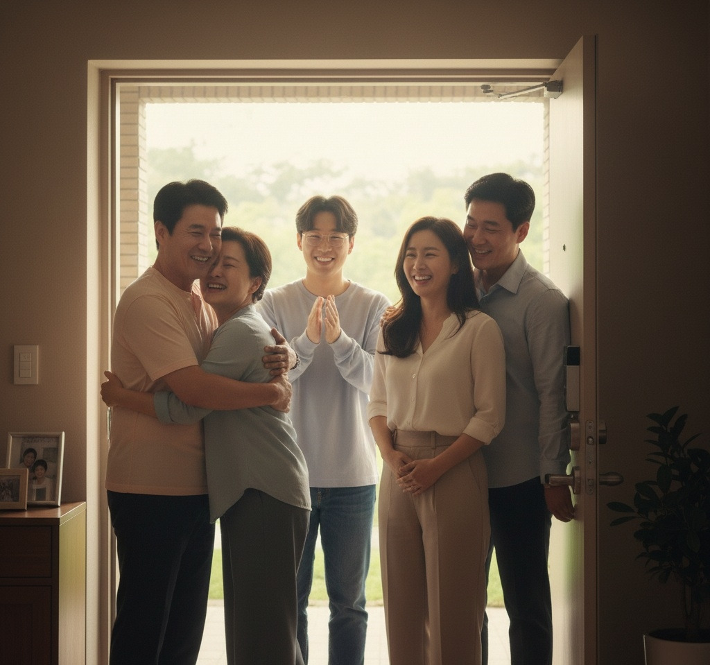 그날 저녁, 세 사람은 수연의 집으로 달려갔다. 수연은 남편과 함께 문을 열어주었다.