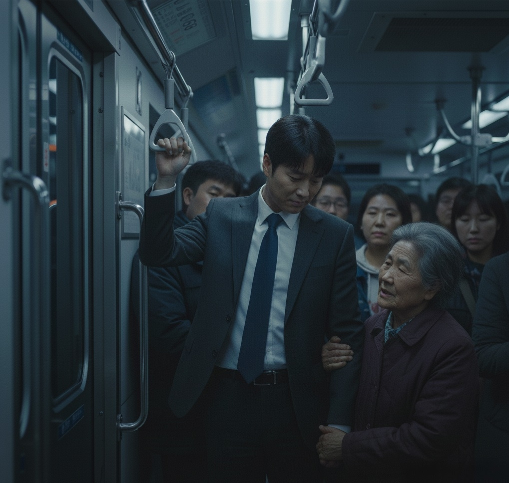 하지만 지하철은 두 정거장, 세 정거장을 지나도 서지 않았다. 신호 대기 때문이라는 안내방송이 흘렀다. 할머니의 손은 점점 더 심하게 떨렸다. 민준은 결국 자신의 팔로 할머니를 지탱했다.