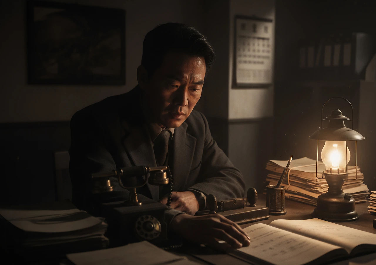밤이 깊었지만 등잔불은 꺼지지 않았고, 창밖에서는 바람에 흔들리는 전깃줄 소리가 낮게 울렸다.