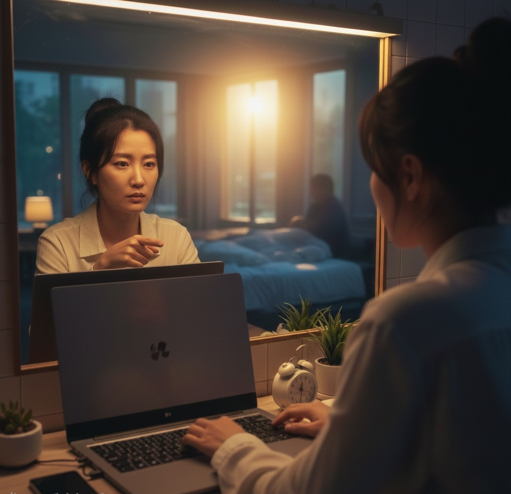 윤슬은 스스로에게 물었다. 만약 이 마감일을 다른 팀원이나 상사와의 약속이었다면? 그녀는 밤을 새워서라도, 몸이 부서지더라도 지켰을 것이다. 다른 사람의 눈에 '무책임한 사람'으로 찍히는 것을 가장 두려워했기 때문이다.