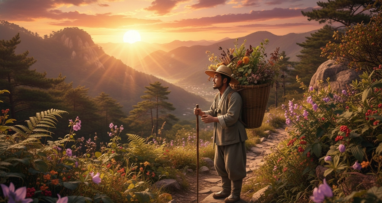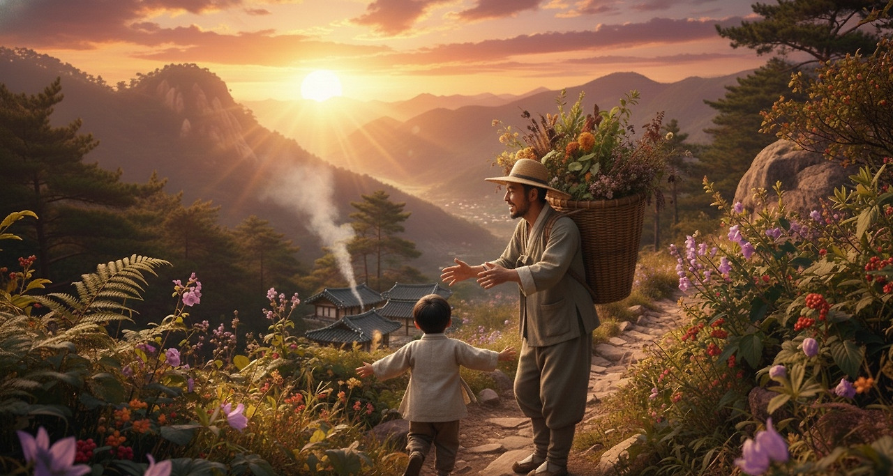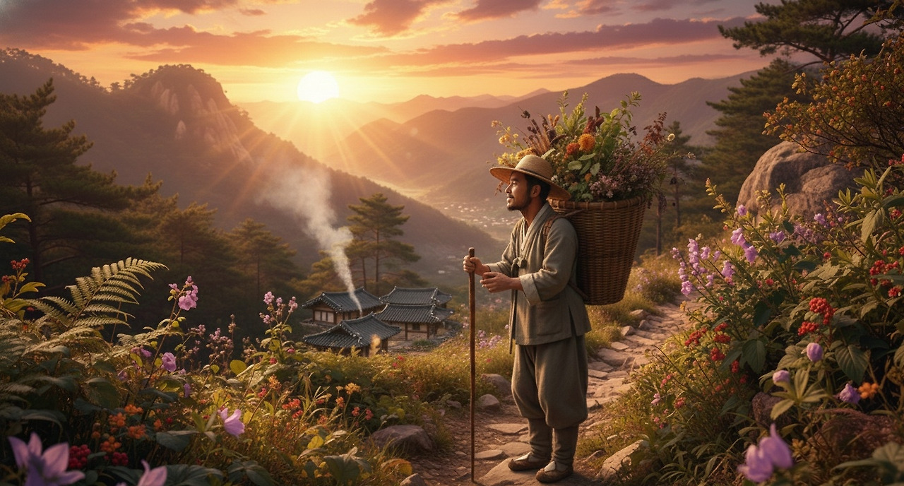 등에 멘 지게에는 약초 꾸러미가 가득했다. 당귀(當歸), 황기(黃芪), 산삼(山蔘)... 모두 깊은 산속에서만 구할 수 있는 귀한 것들이었다.