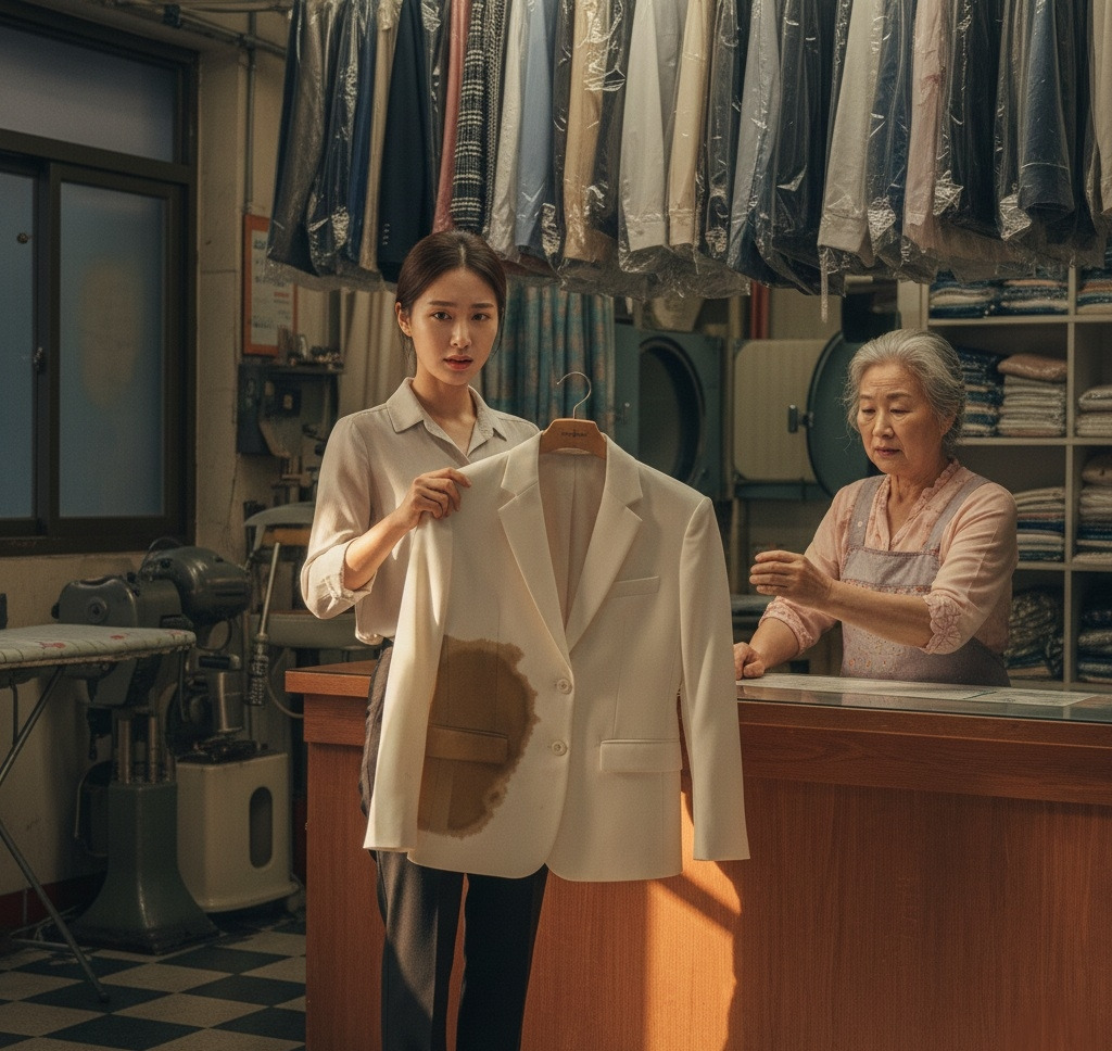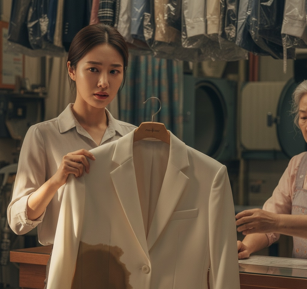 여성은 안도의 한숨을 쉬며 세탁소를 나갔다.