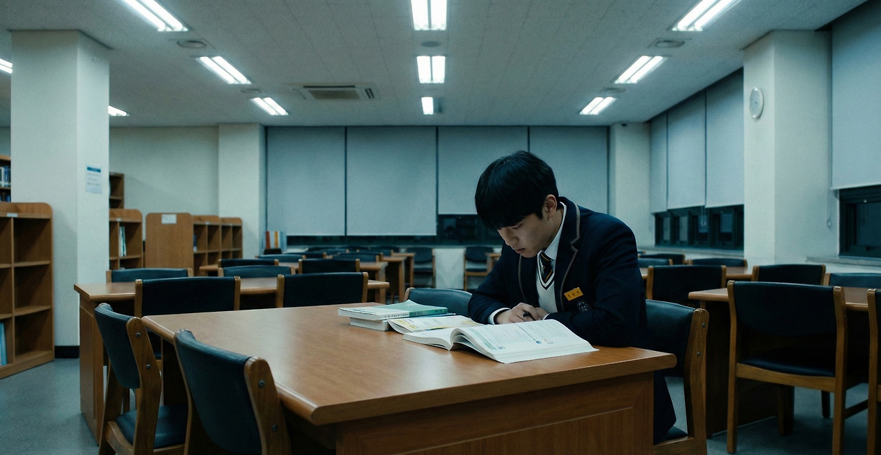 학생은 자습실로 들어갔다. 자리에 앉아 교과서를 펼쳤다.