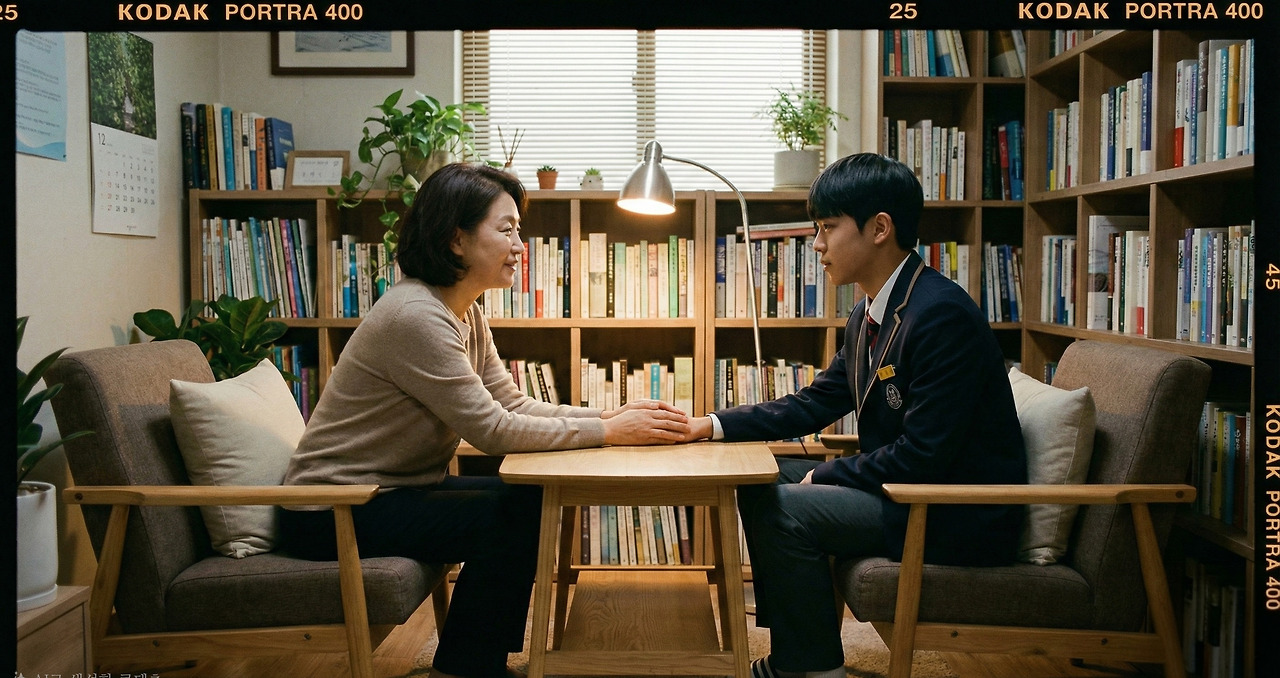 "아니에요. 선생님 덕분에 용기가 생겼어요. 잘할 수 있을 것 같아요, 엄마로서."