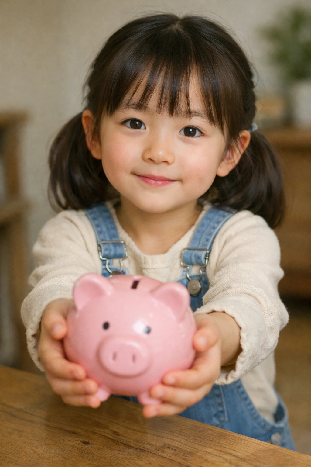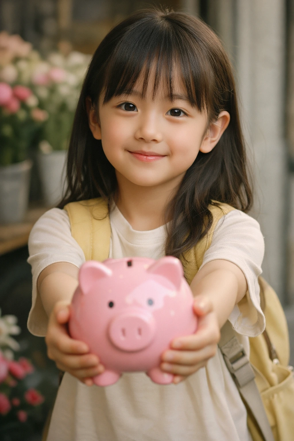 아이는 돼지 저금통을 꺼냈다. 동전이 가득 들어 있었다.