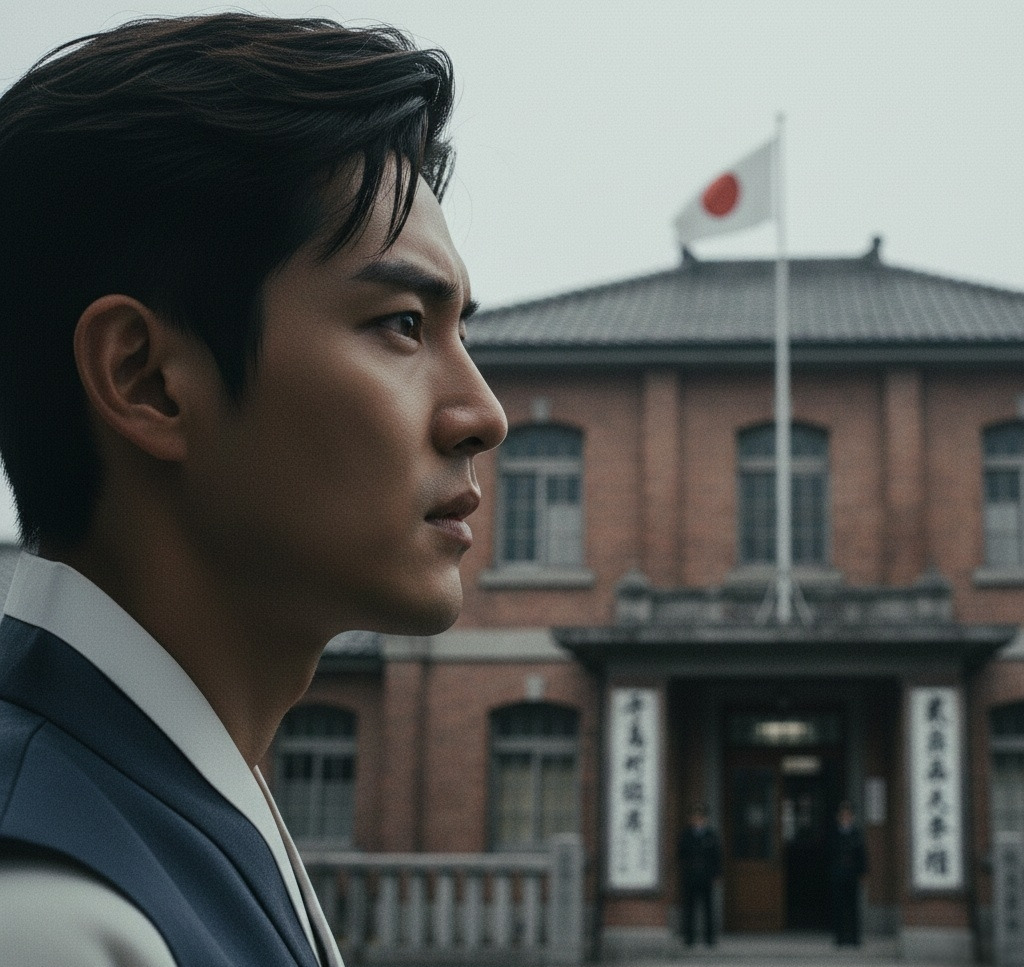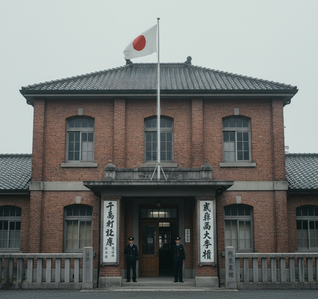 일제강점기의 관청 건물. 붉은 벽돌로 지어진 2층 건물이었다. 현관 위에는 일장기(日章旗)가 펄럭이고 있었다.