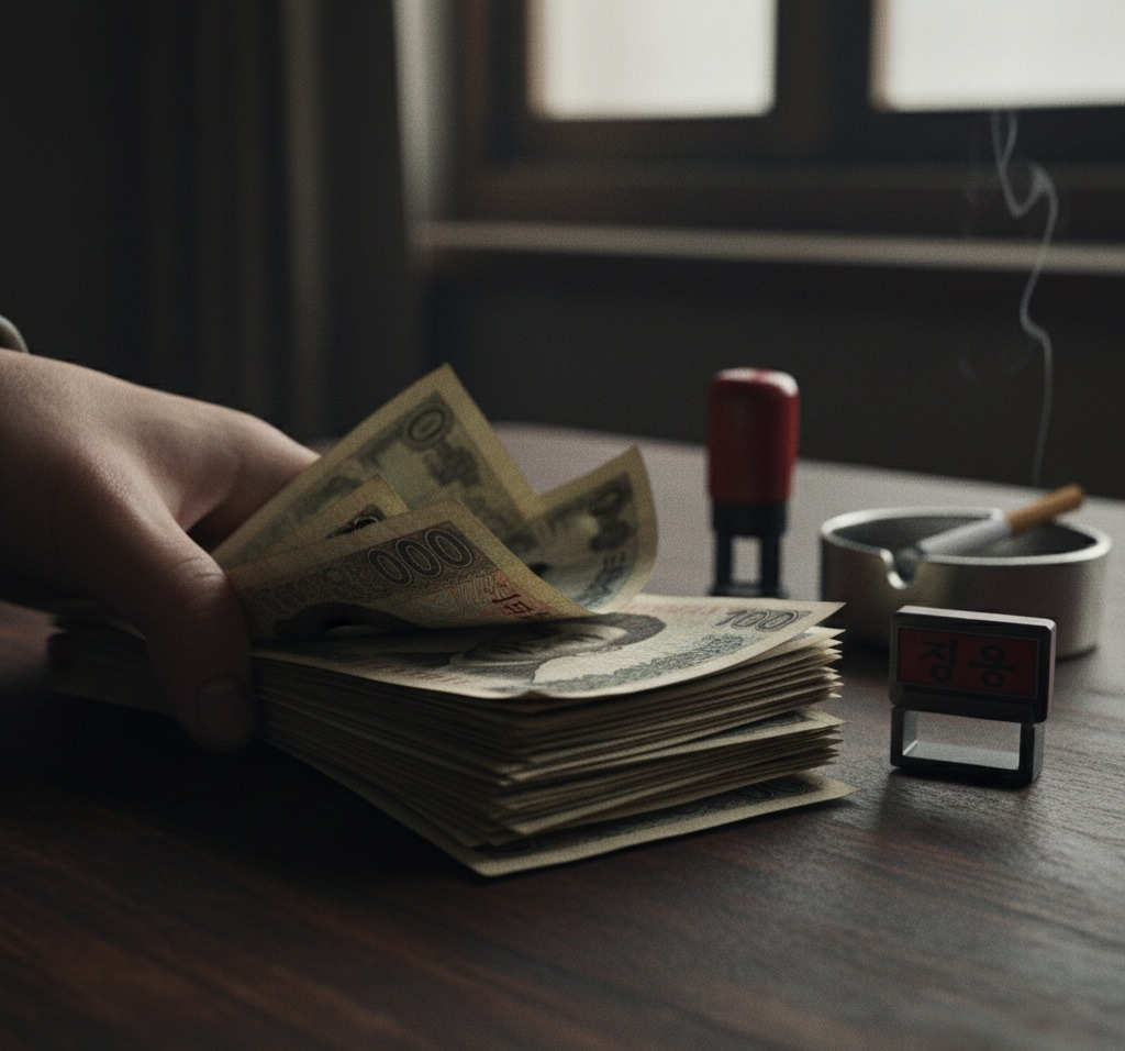 이산갑은 돈을 세어 책상 위에 놓았다.