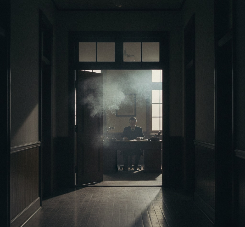 복도 끝 방문이 열려 있었다. 안에서 담배 연기가 피어 나왔다.