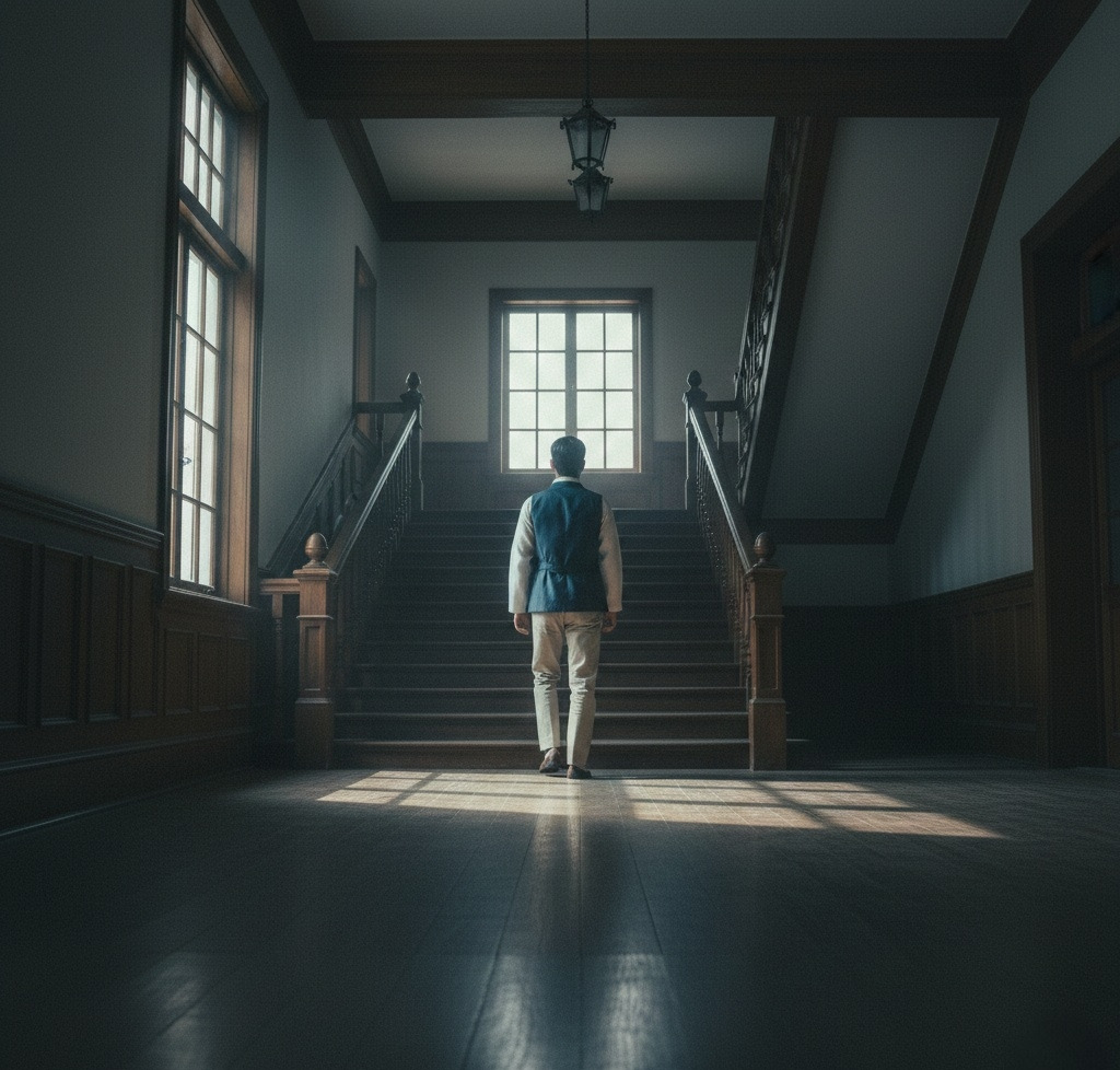 이산갑은 계단을 올라갔다.