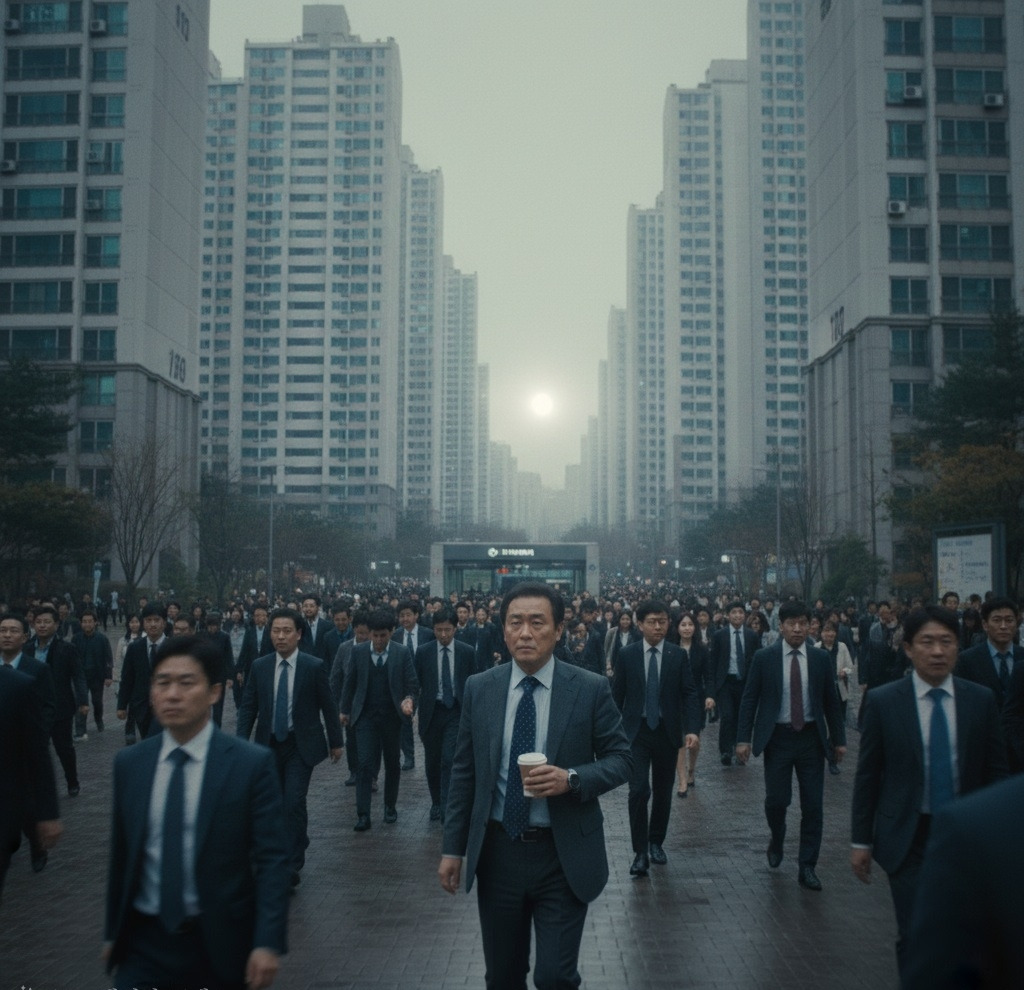 회색 콘크리트 건물들 사이로 아침 7시의 출근 인파가 쏟아져 나왔다.