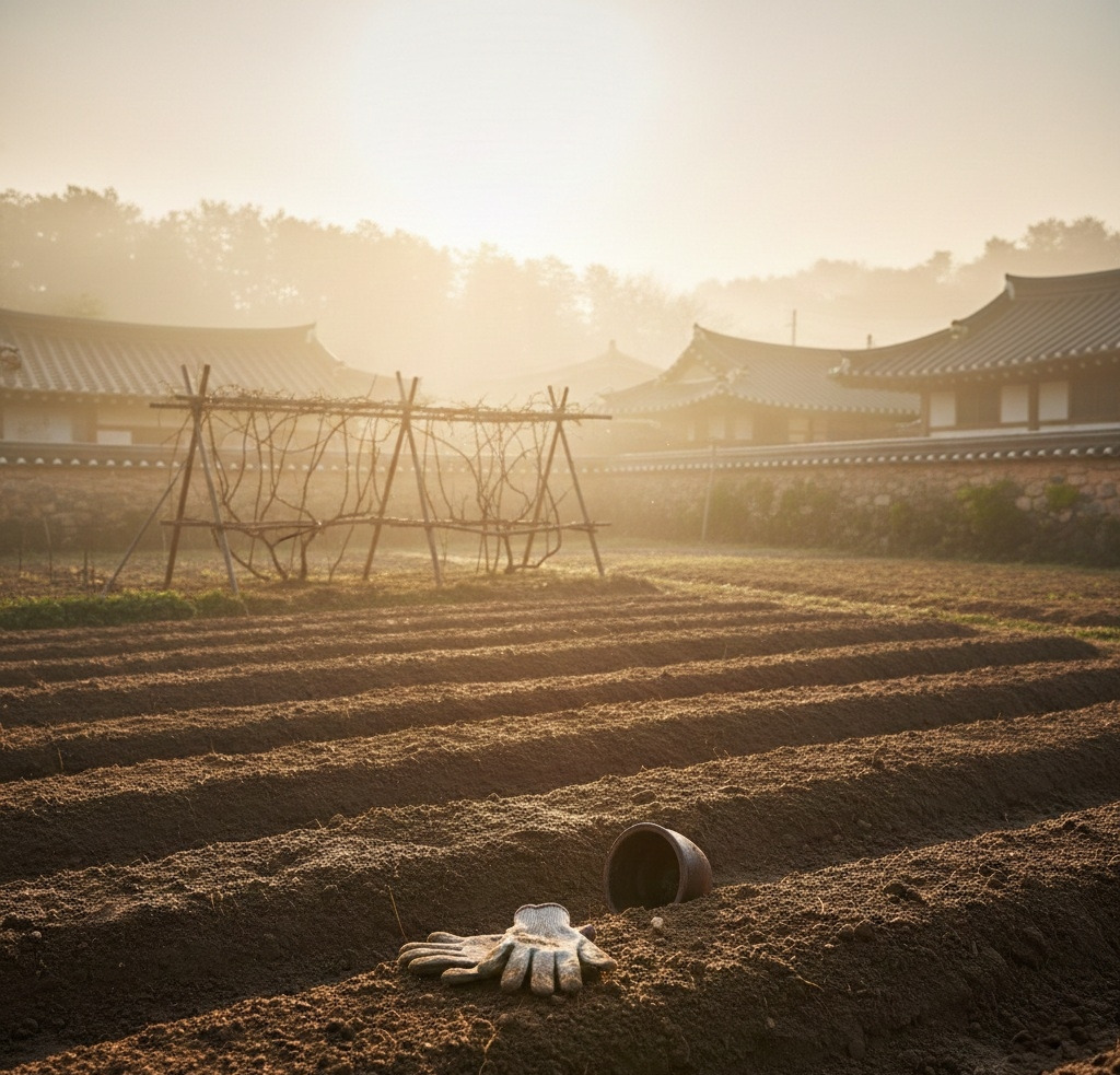 서연은 호미를 들었다. 약해진 몸으로 땅을 일궜다.