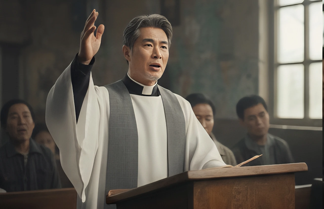 신부는 강론대에서 내려왔다.