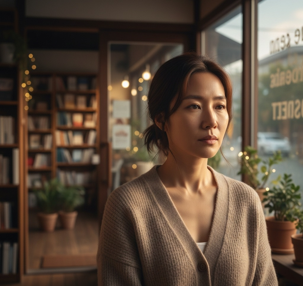 햇살은 책장을 타고 천천히 흘렀고, 커피 향이 공기 속에 머물렀다.