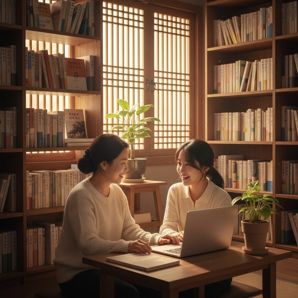 준혁은 그녀 옆에 앉아 조용히 말했다.