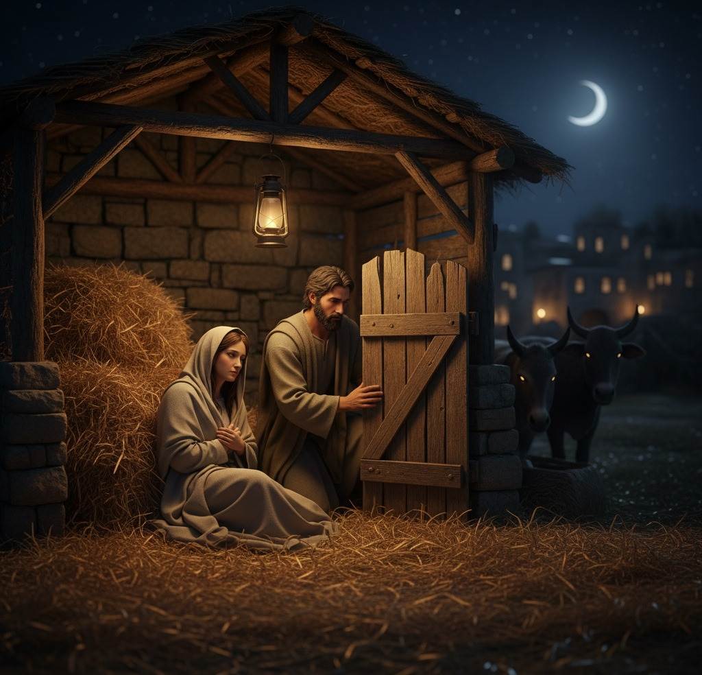 마침내 그들이 도착한 곳은 마을 밖 작은 마구간이었다. 사람 대신 짐승의 숨결이 남아 있는 곳, 그러나 바람을 막아 줄 벽이 있었고, 추위를 피할 지붕이 있었다.