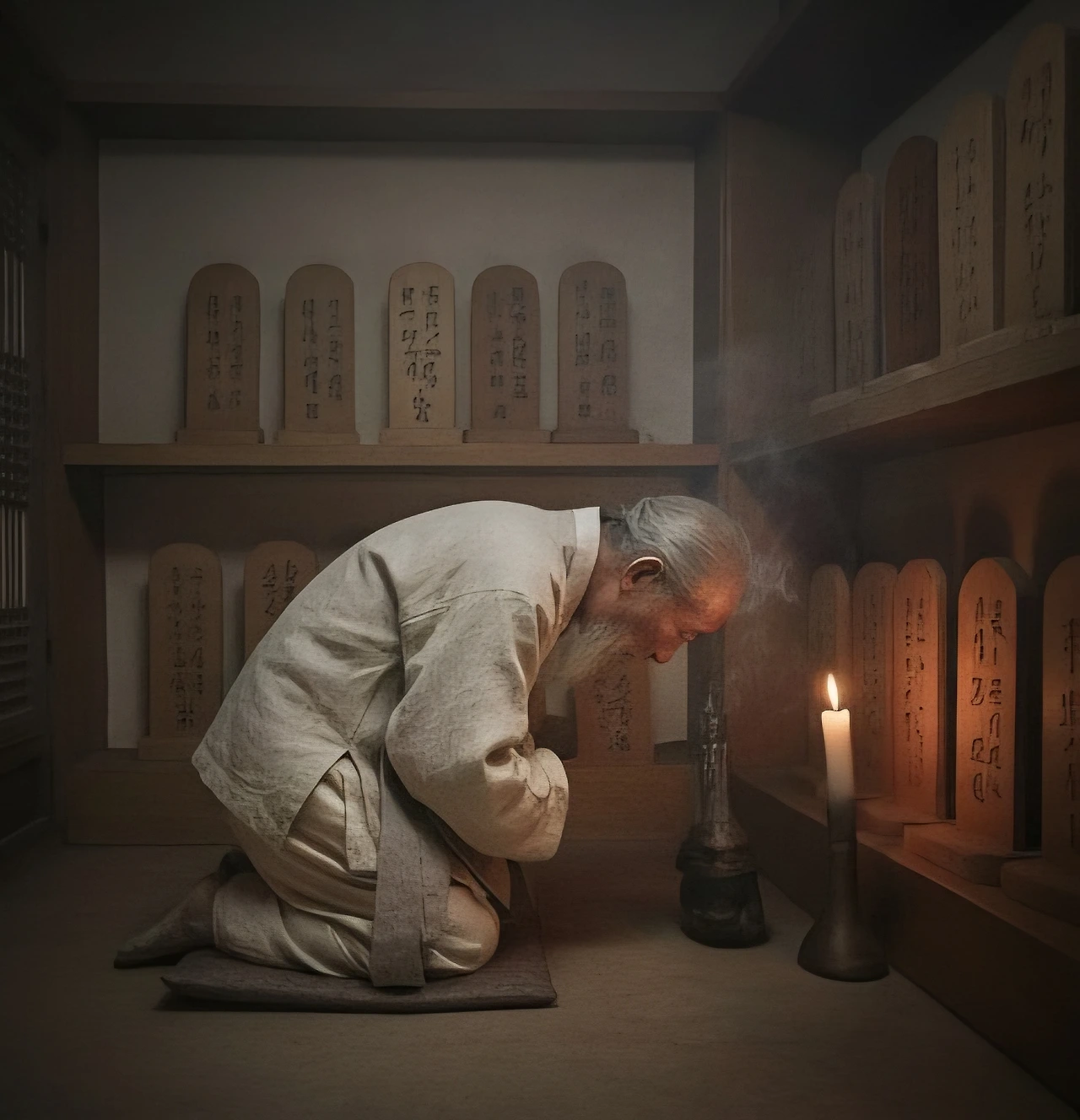 저녁을 먹고, 복은 사당(祠堂)에 들어가 기도했다.