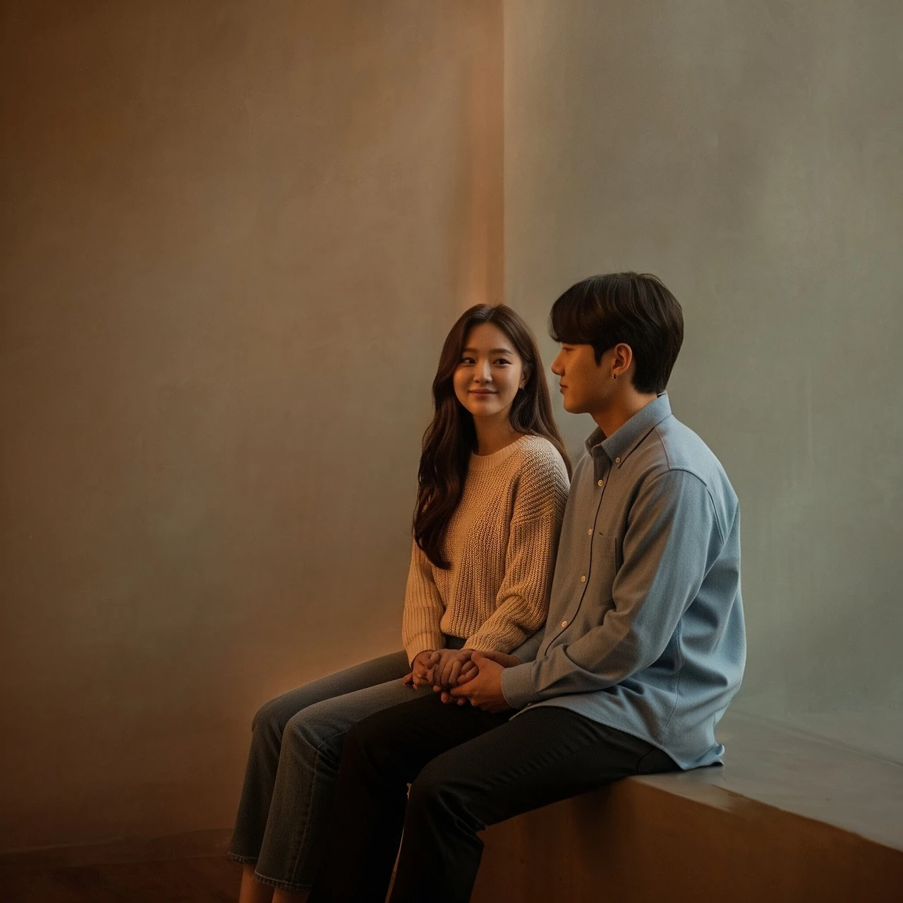 눈가엔 살짝 붉어진 흔적이 남아 있었다.