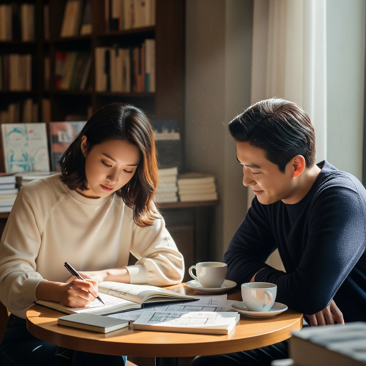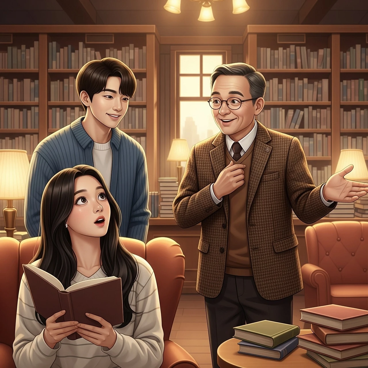 그날 저녁, 두 사람은 책방 구석에 앉아