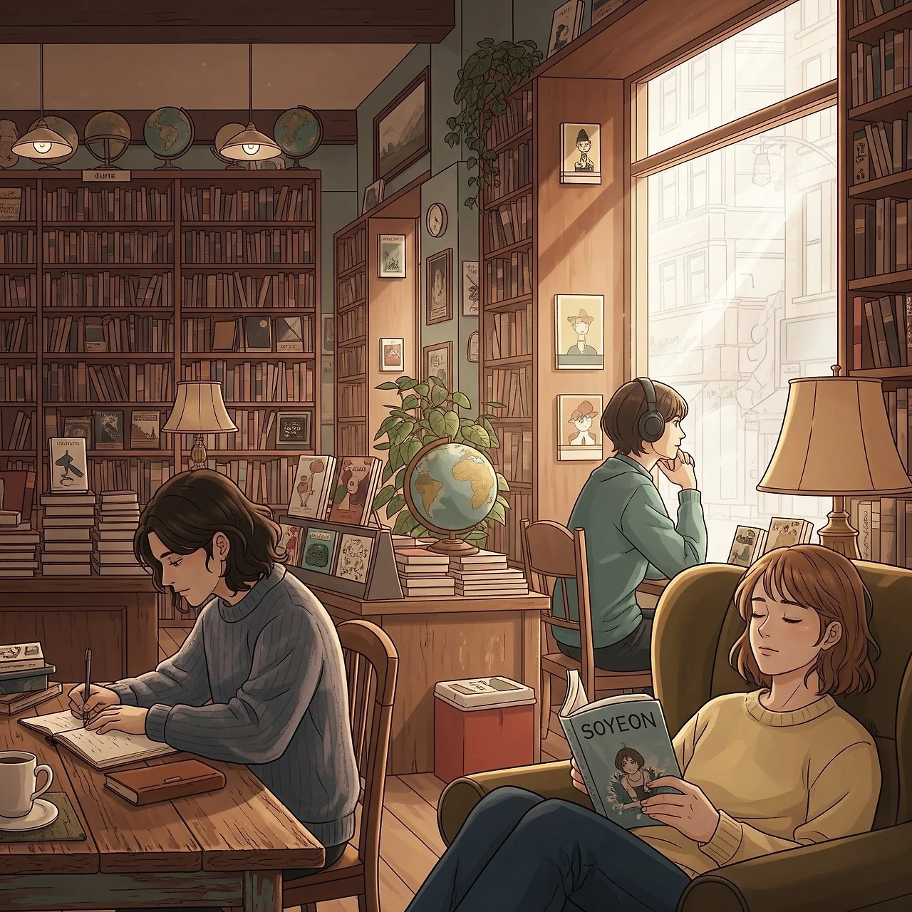 책방 안엔 잔잔한 재즈가 흐르고 있었다.