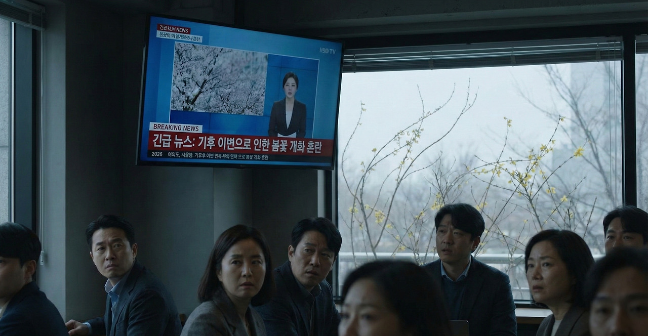 "긴급 뉴스입니다. 올해 이상 기후로 인해 봄꽃 개화 시기가 크게 혼란을 겪고 있습니다. 매화와 개나리가 동시에 피고, 벚꽃은 아직 꽃망울조차 맺지 않았습니다. 기상청은..."