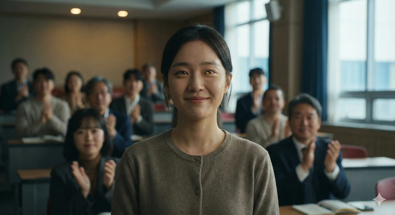 청중석에서 박수가 터져 나왔다. 영춘의 입가에 미소가 번졌다.