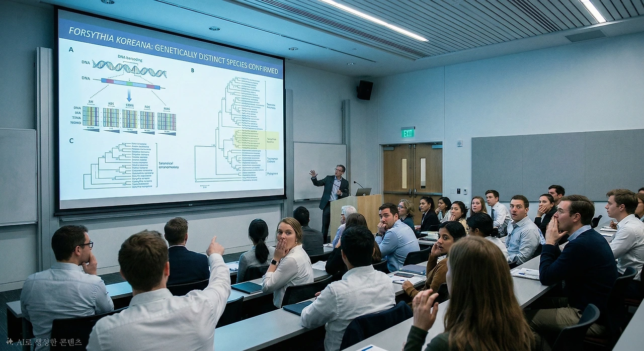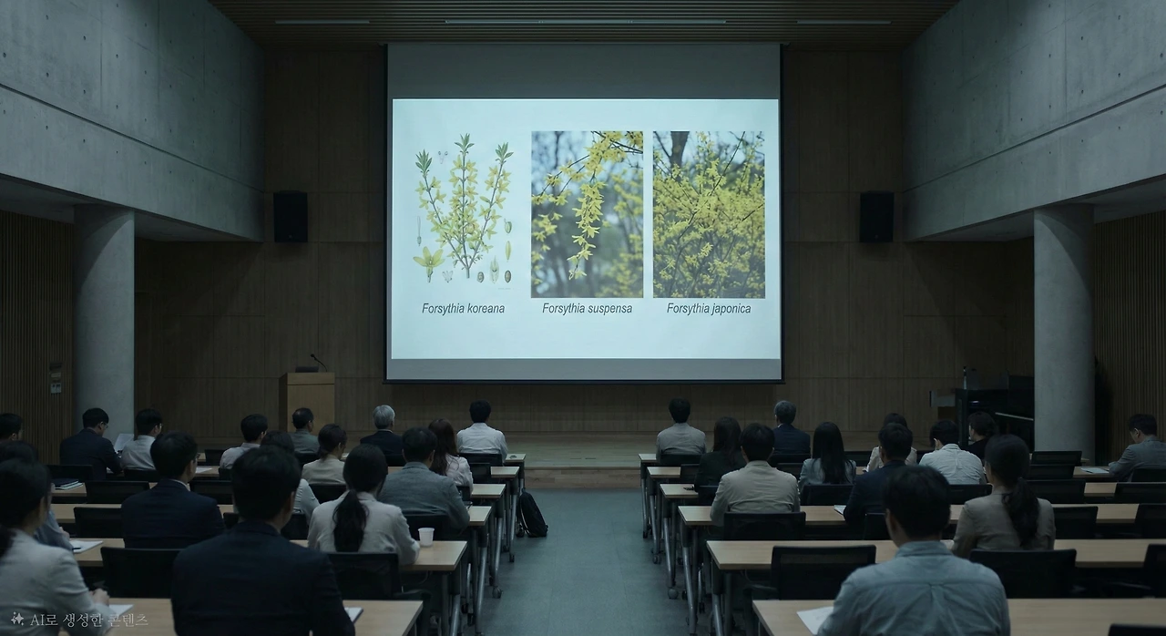 50대 식물학 교수가 단상에 올랐다. 스크린에는 세 종류의 개나리 사진이 떠올랐다.