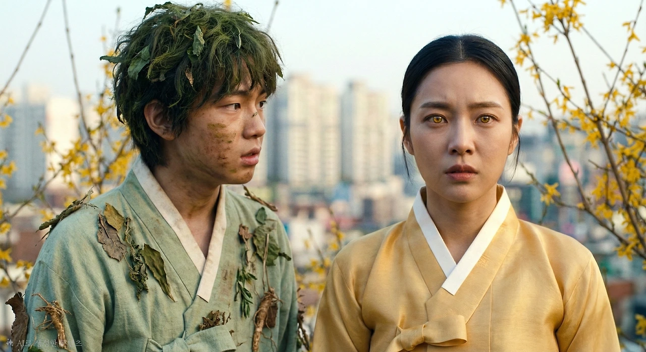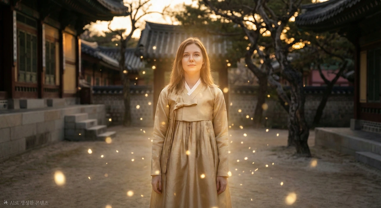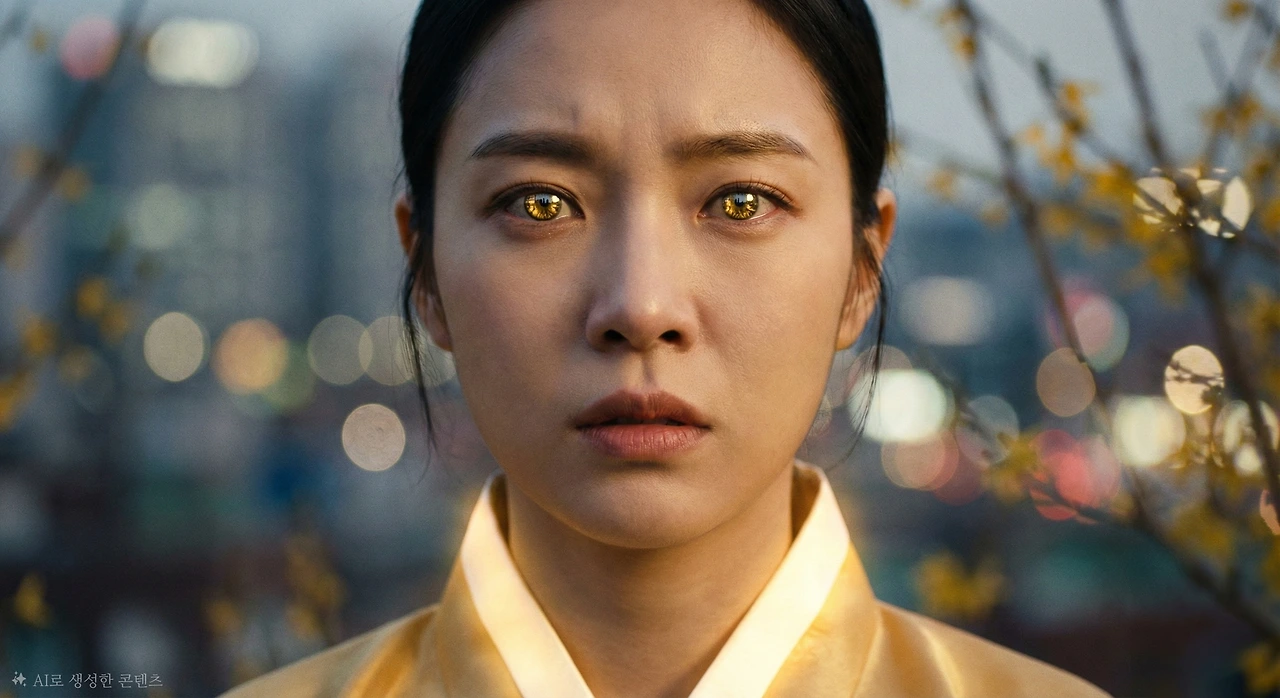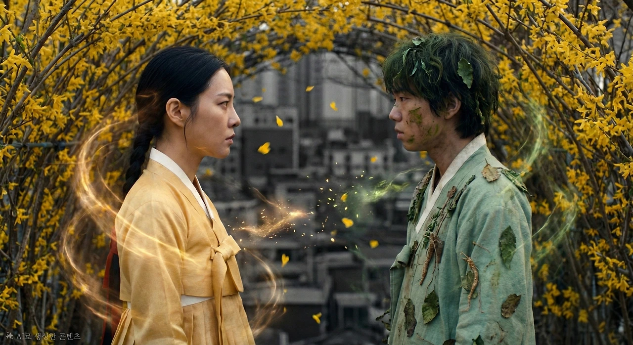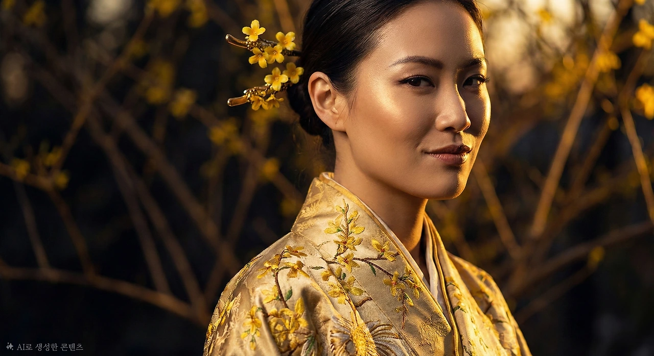 섬광이 사라진 자리에 20대 중반의 여성이 서 있었다. 발목까지 내려오는 황금빛 한복, 어깨까지 흘러내린 밝은 갈색 머리, 그리고 사방으로 빛을 발산하는 듯한 생기 넘치는 얼굴. 그녀의 이름은 영춘(迎春), 개나리의 정령이었다.