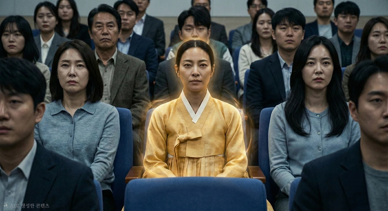 청중석이 술렁였다. 그 뒤편 관람석에는 영춘이 앉아 있었고, 그녀의 양옆에는 두 명의 낯선 정령이 자리했다.