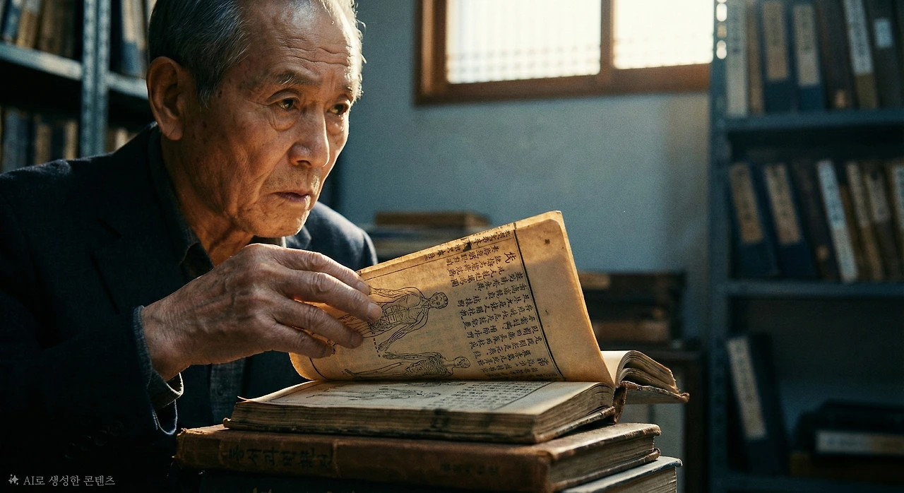 "이것은 조선시대 『동의보감』(1613년)과 『향약집성방』(1433년)의 원본 사본입니다. 여기 보십시오. 이미 600년 전부터 우리 선조들은 개나리를 약재로 사용했고, '우리 땅에서 나는 연교가 중국산보다 낫다'고 기록했습니다."