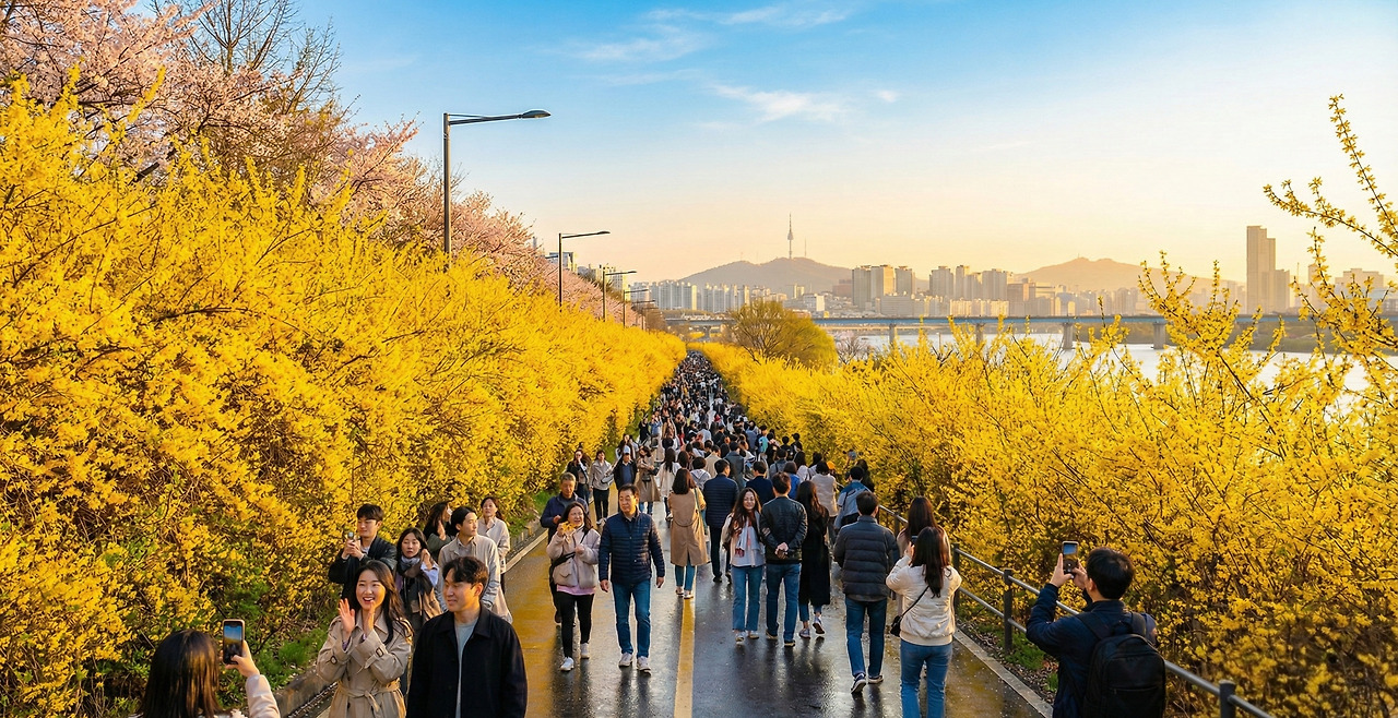 한 달 후, 서울은 온통 노란색으로 물들었다. 개나리가 만개한 것이다. 사람들은 스마트폰을 꺼내 사진을 찍으며 환호했다.