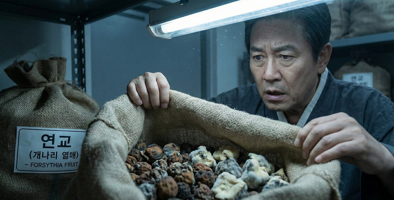 창고에 쌓인 연교 포대를 확인하던 원장의 얼굴이 새하얗게 질렸다. 정상적인 개나리 열매가 아니라, 이상하게 변색되고 크기가 일정하지 않은 것들이 섞여 있었다.