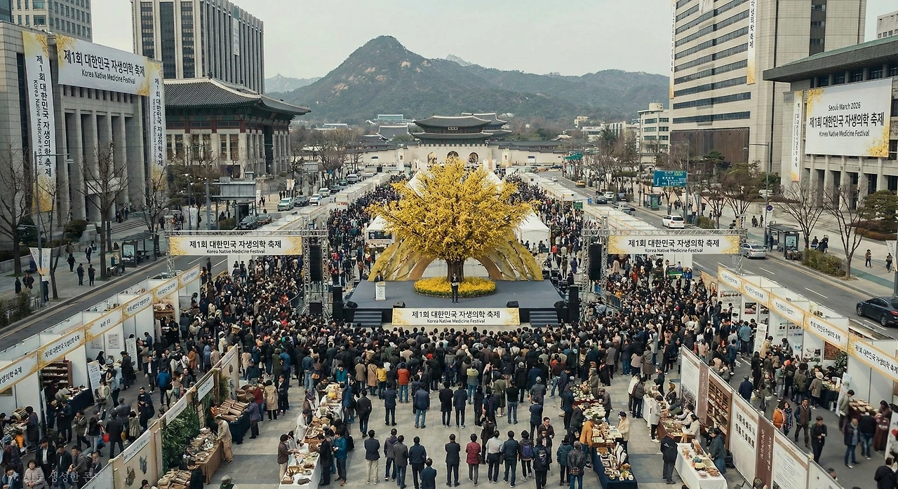 '토종 약재 바로 알기' 대규모 박람회가 열렸다. 수만 명의 시민들이 모였고, 중앙 무대에는 거대한 개나리 모형이 세워져 있었다.