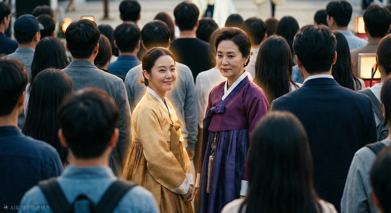 관중석 맨 뒤에서 영춘이 미소 지으며 지켜보았다. 그녀의 곁에는 무궁이 서 있었다.