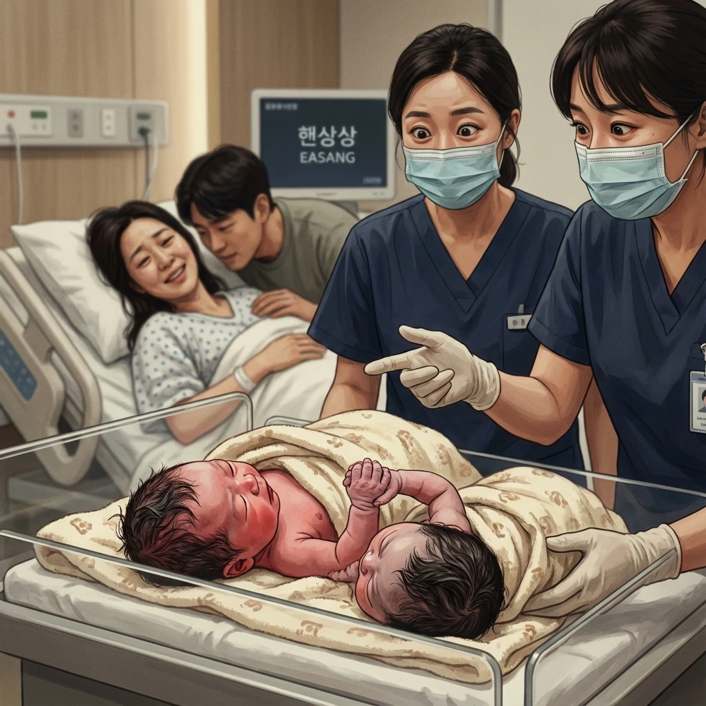 "이렇게 머리숱이 많은 신생아는 처음 봐요."