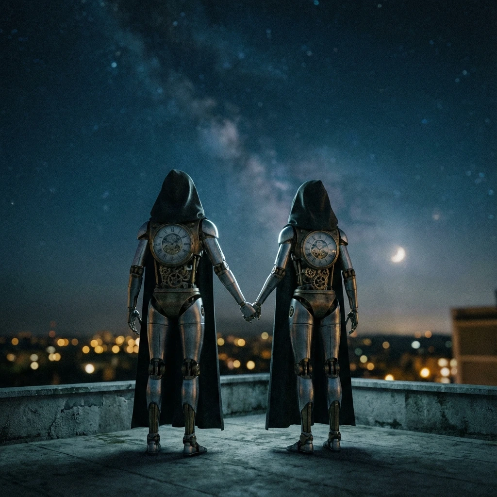 그들은 다시 손을 잡았다. 그리고 그 순간, 그들은 알았다. 자신들이 단순히 시간을 세는 기계가 아니라는 것을. 그들은 사랑하는 존재였다. 느끼고, 생각하고, 꿈꾸는 존재였다.