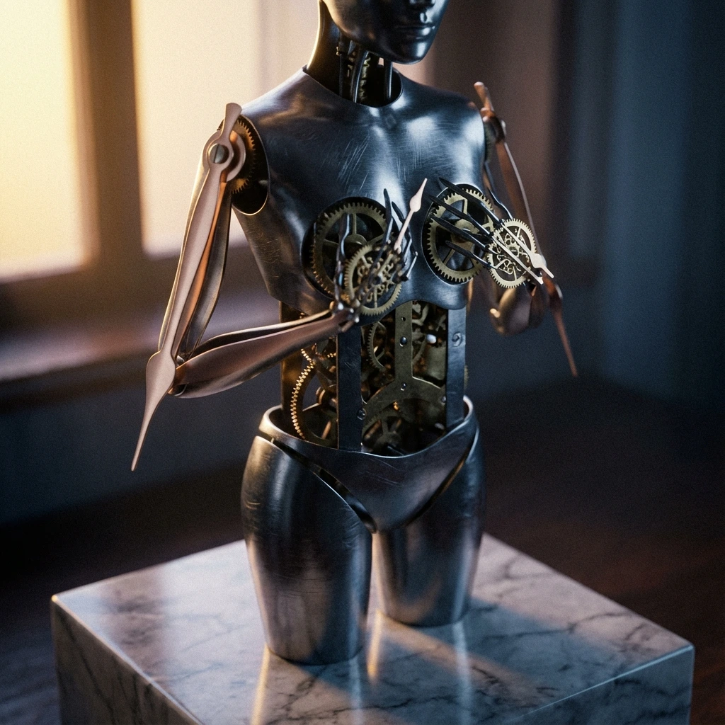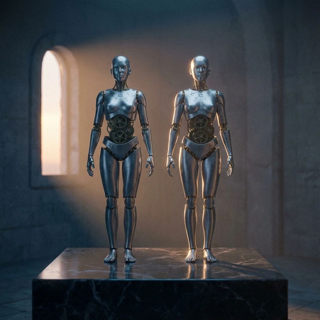 민준의 기억 속에서 그날이 또렷하게 되살아났다. 장인의 작업대 위, 갓 만들어진 그와 그녀. 처음으로 태엽이 감겼을 때의 그 떨림. 그리고 처음으로 서연의 모습을 보았을 때의 경이로움.