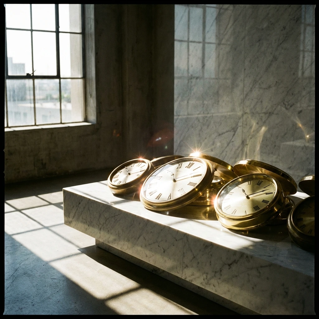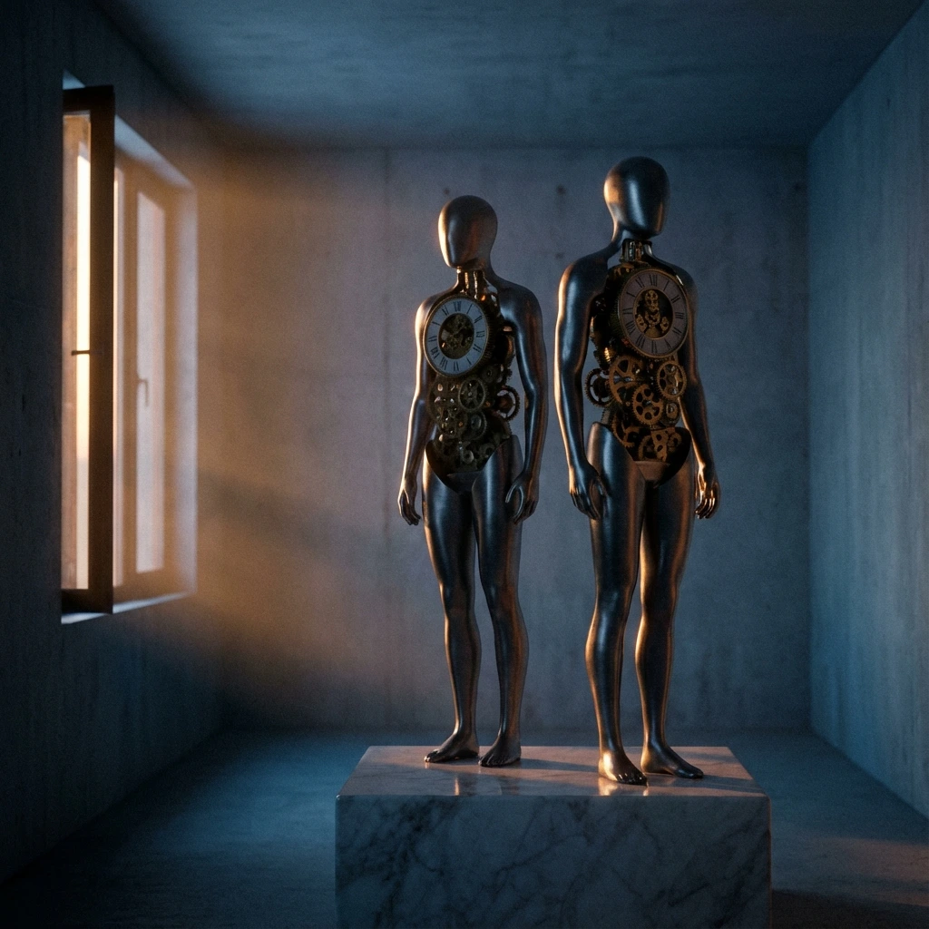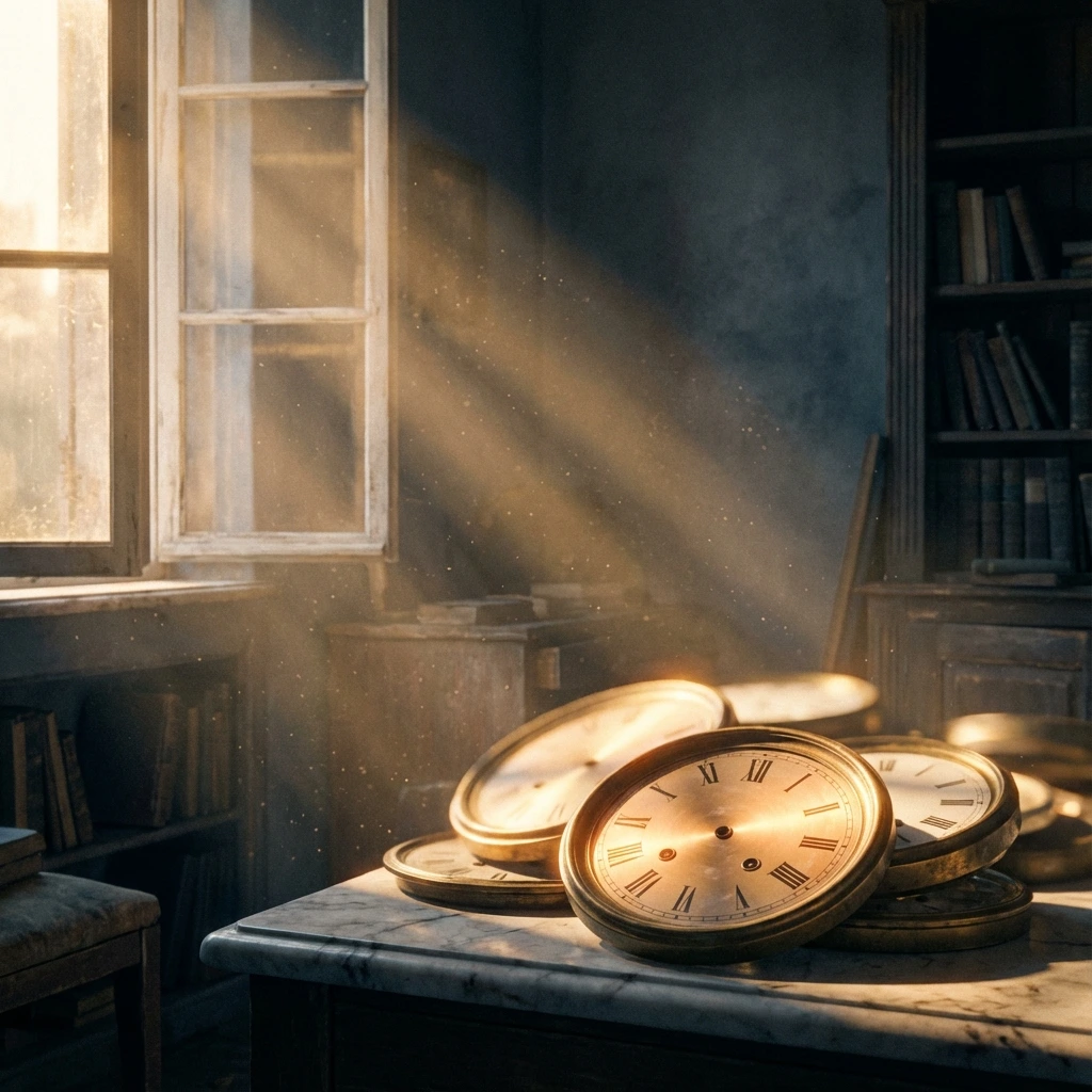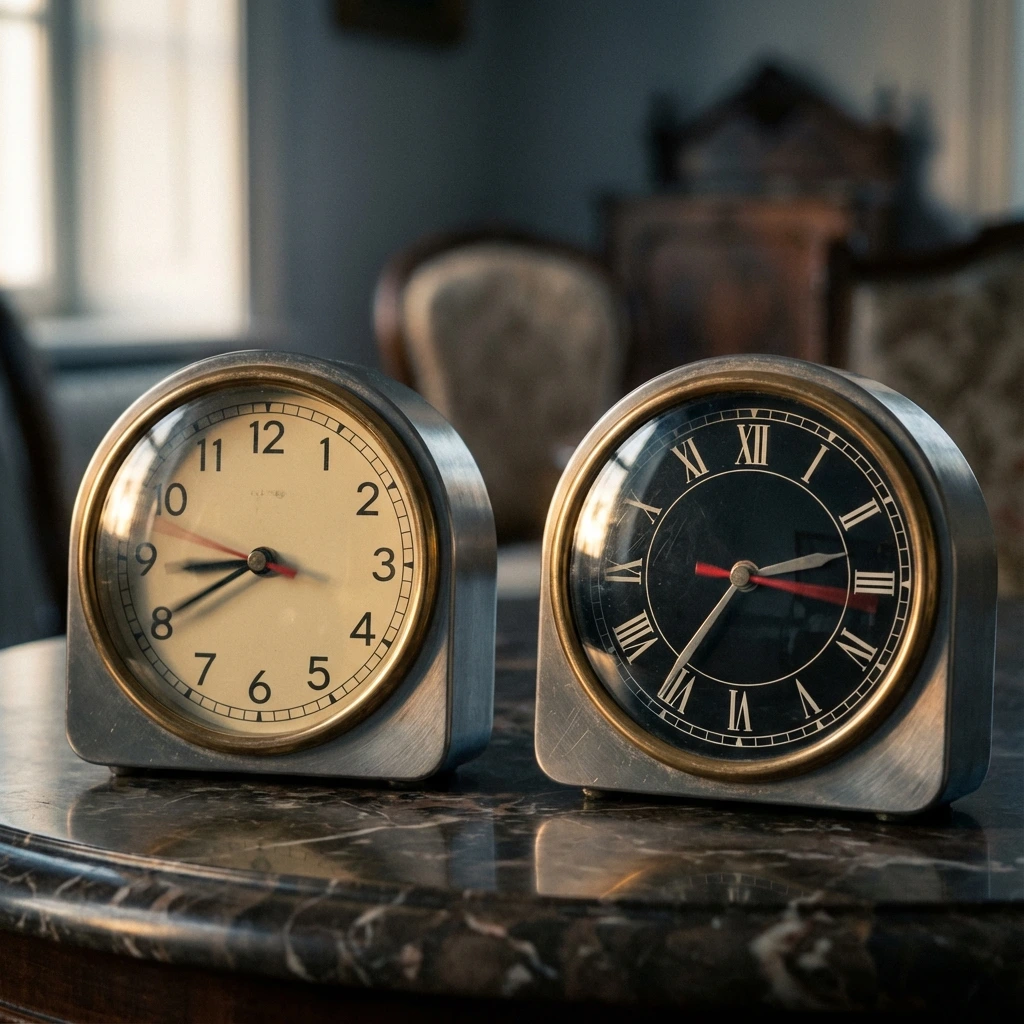 그녀의 바늘은 민준의 것보다 섬세했고, 그녀가 움직일 때마다 은은한 빛이 반짝였다. 두 시계는 하얀 대리석 받침 위에 나란히 서서, 매일 똑같은 자리에서 시간을 세고 있었다.
