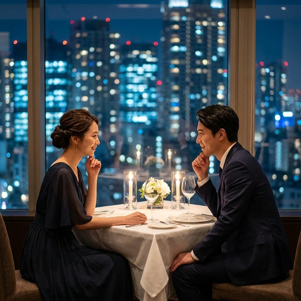 2031년 봄, 도쿄 타워가 보이는 레스토랑.