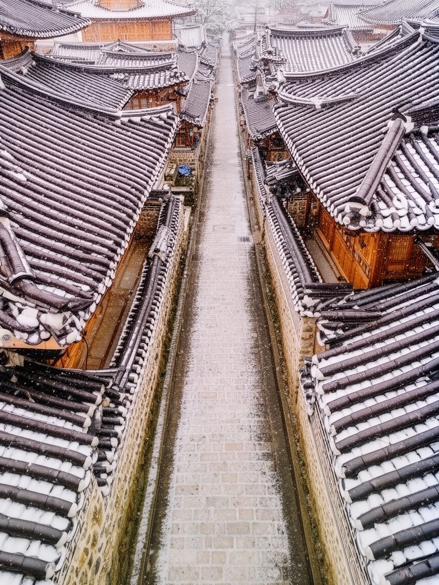 박물관을 나와 한옥마을 골목으로 들어섰다. 눈은 여전히 내리고 있었고, 골목길에는 발자국 하나 없는 하얀 눈이 쌓여 있었다.