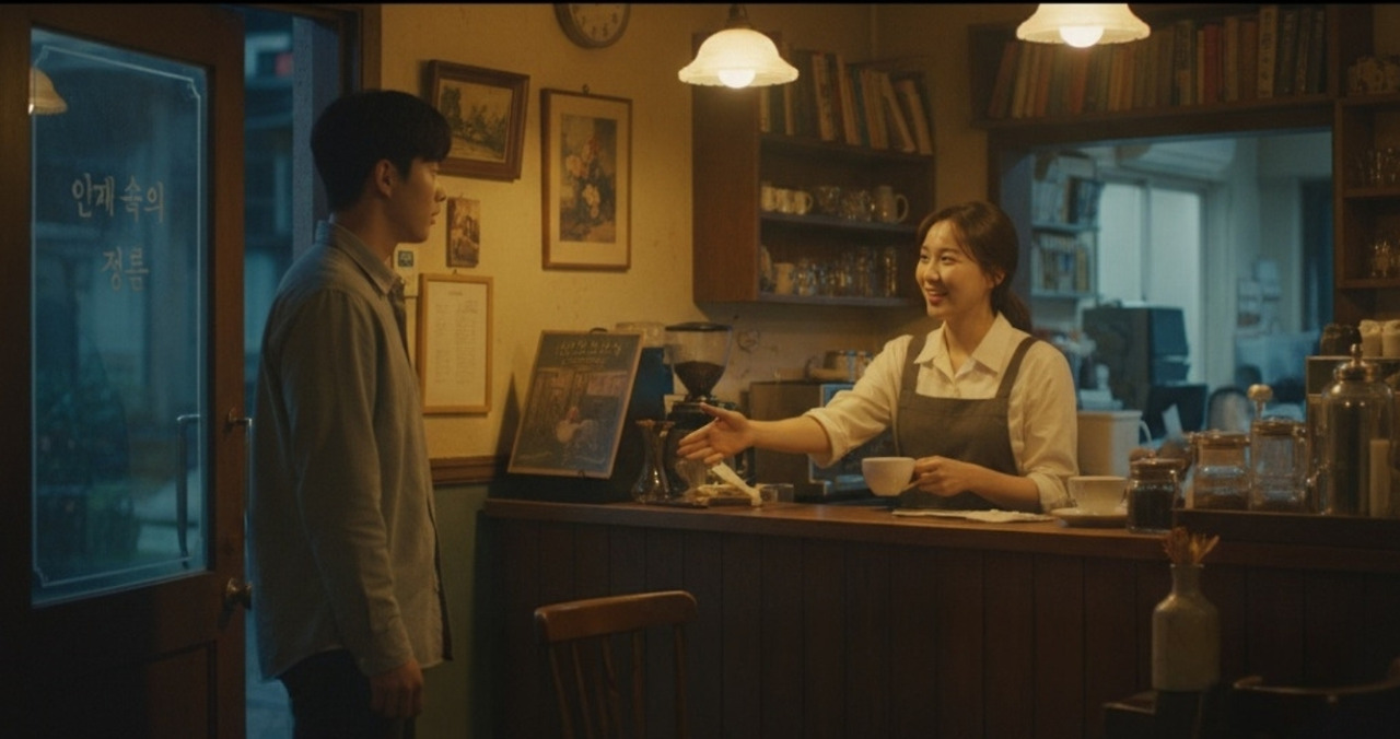 가을 햇살이 따뜻하게 비추던 어느 날, 손님으로 가득 찬 카페를 바라보며 지수가 웃었다.
